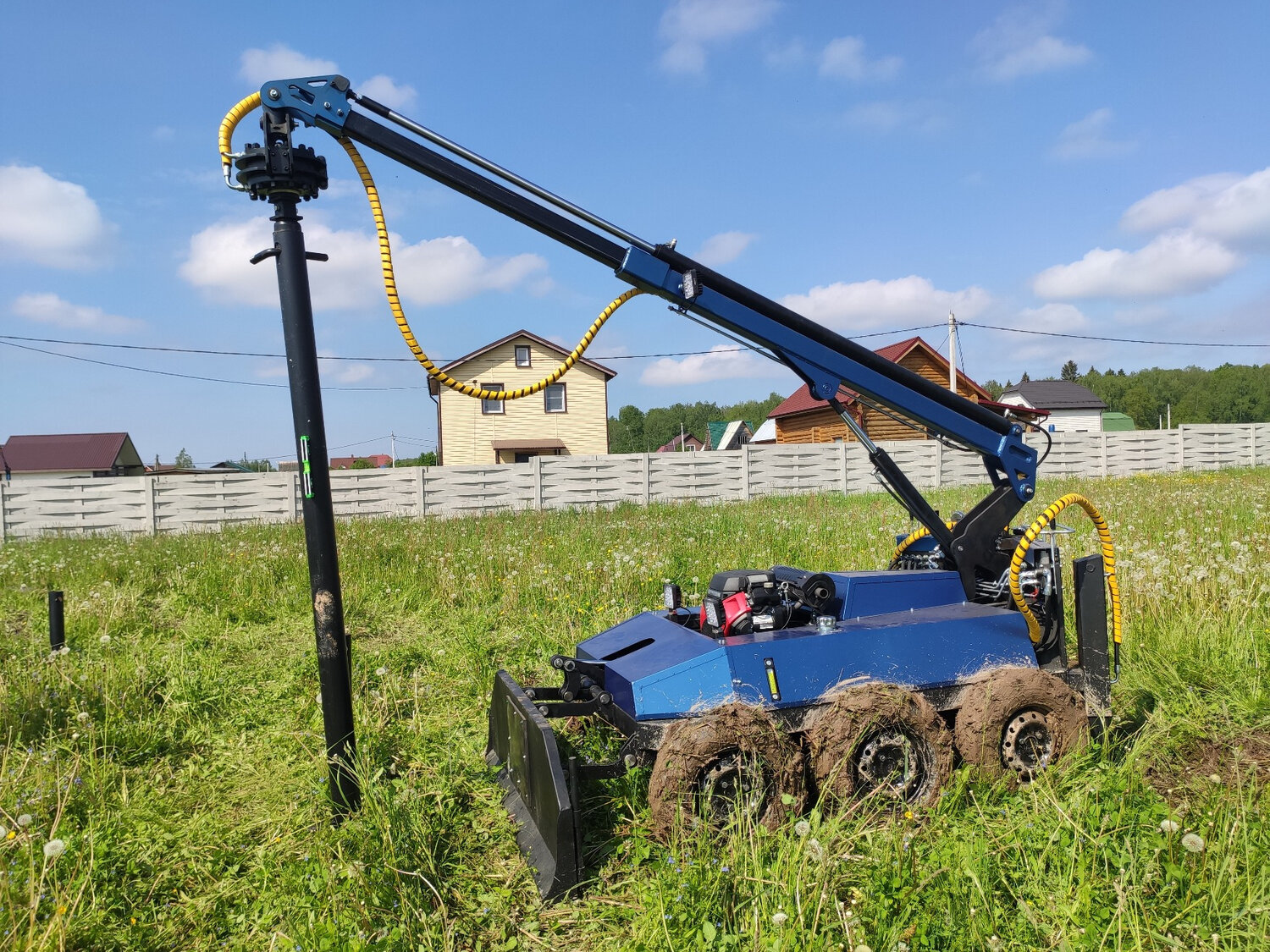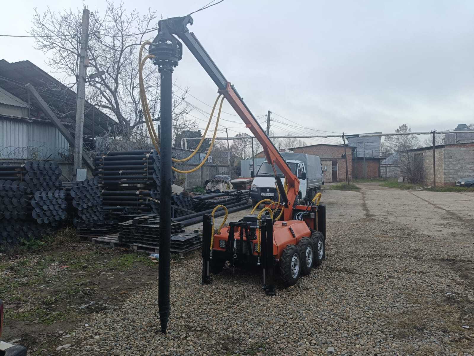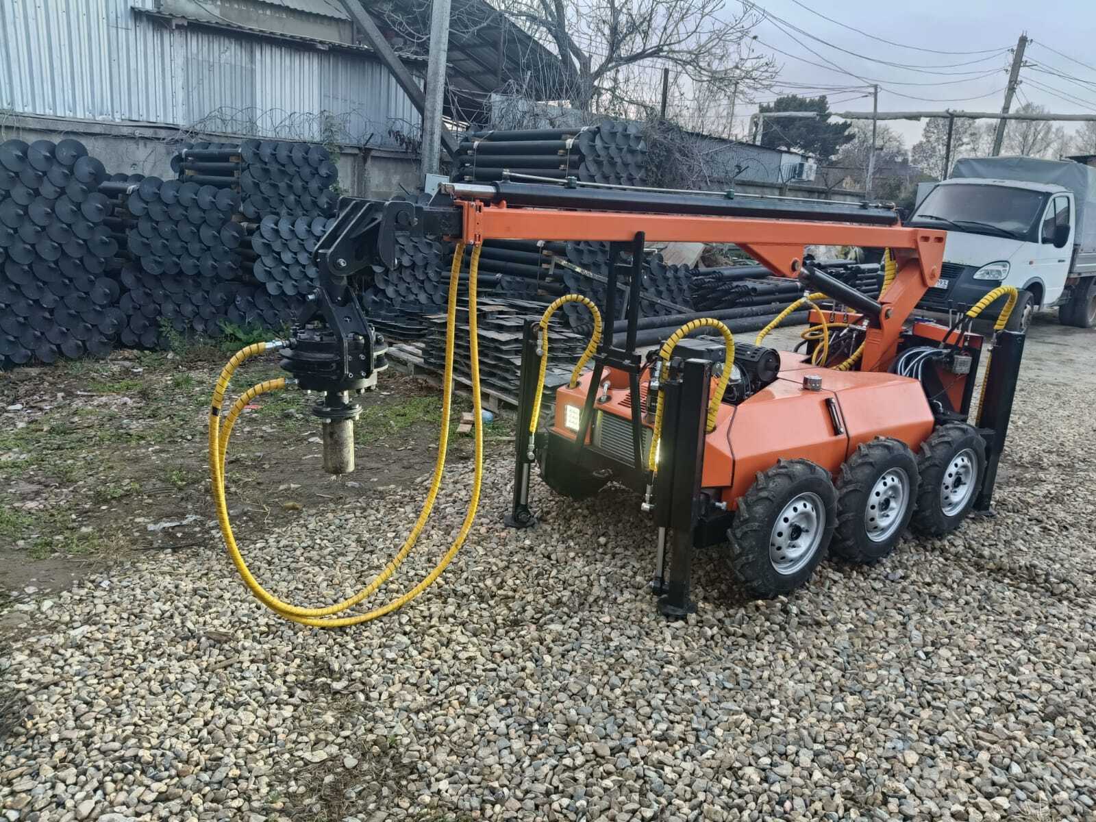 Это современная подвижная установка, для погружения винтовых свай в грунт при различных условиях монтажа. Она направлена на облегчение работы мастеров и увеличение скорости монтажа.